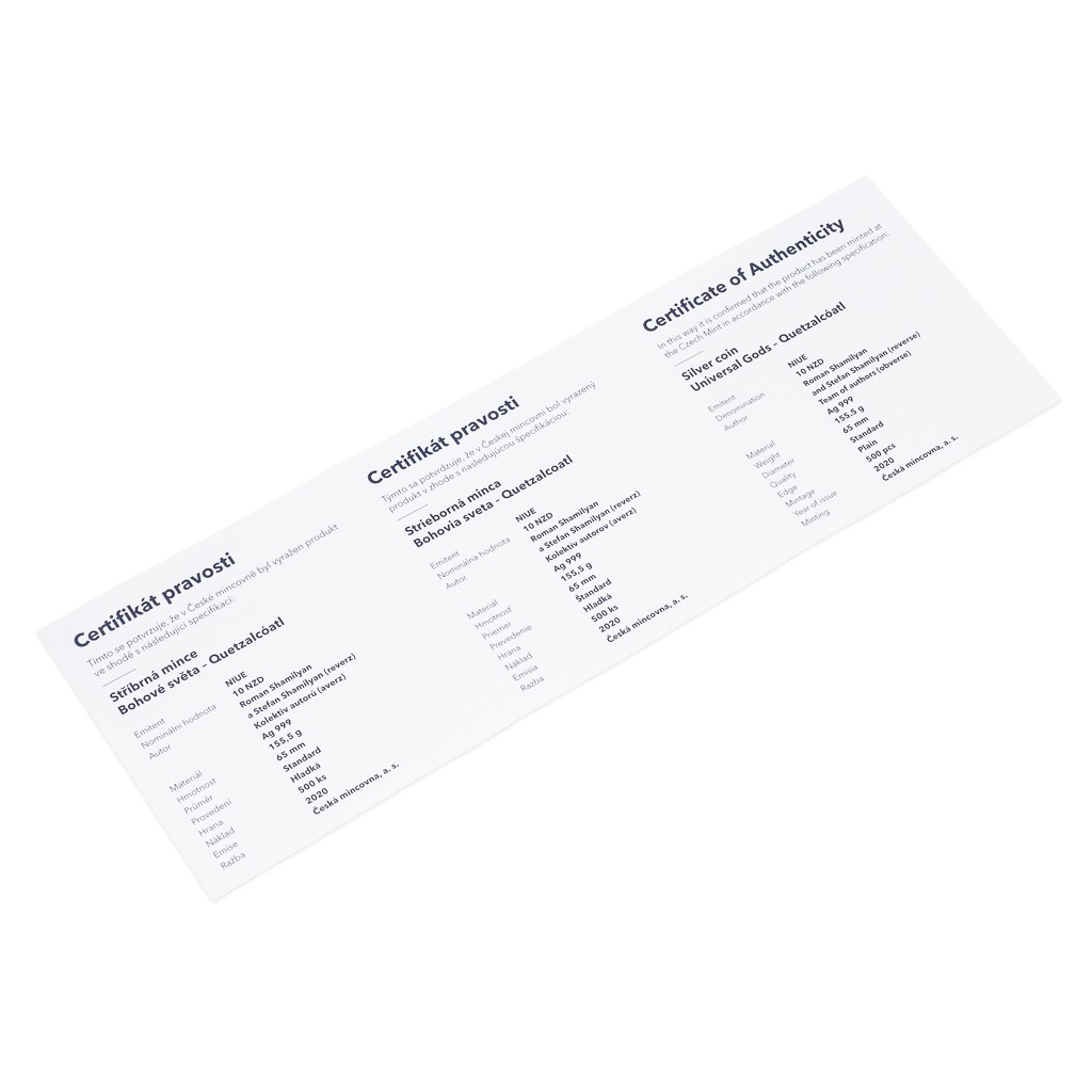 Stříbrná mince Bohové světa - Quetzalcóatl stand