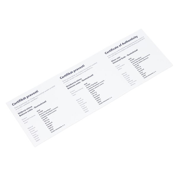 Quetzalcóatl, kterého uctívali původní obyvatelé střední Ameriky, je čtvrtým starodávným bohem, kterému vzdává hold stříbrná mince České mincovny.