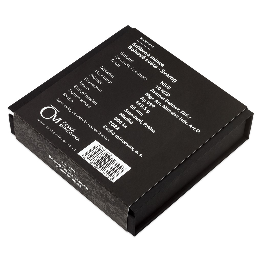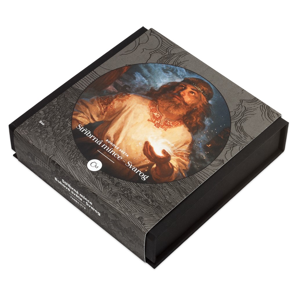 Další patinovaná stříbrná mince České mincovny z cyklu, který připomíná starodávné bohy z celého světa, vzdává hold Svarogovi.
