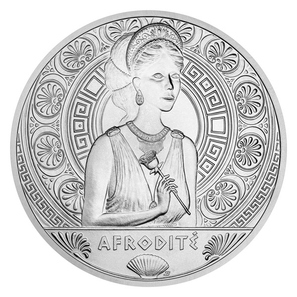 Po pětici starobylých bohů ze všech koutů světa se na pamětních mincích objevují neméně slavné bohyně. Jako první se v ryzím stříbře představuje Afrodíté.