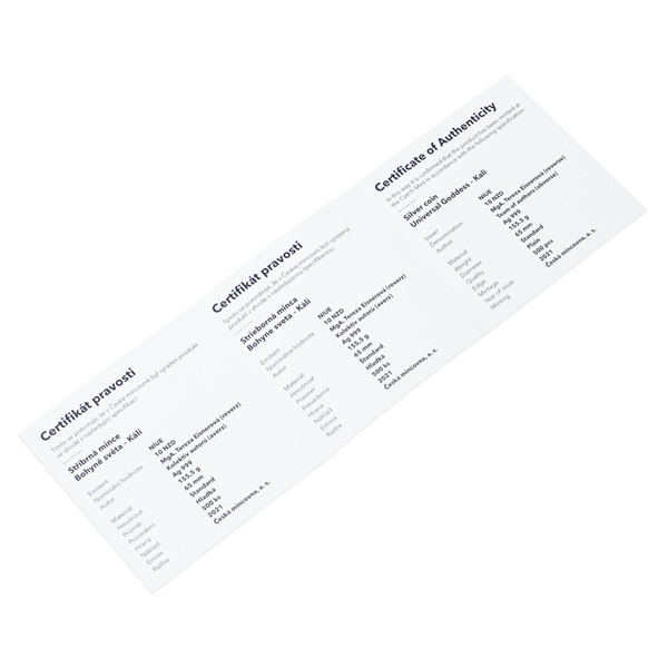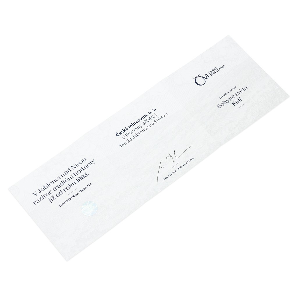 Čtvrtou starobylou bohyní, které je zasvěcena stříbrná mince České mincovny, je hinduistická Kálí.