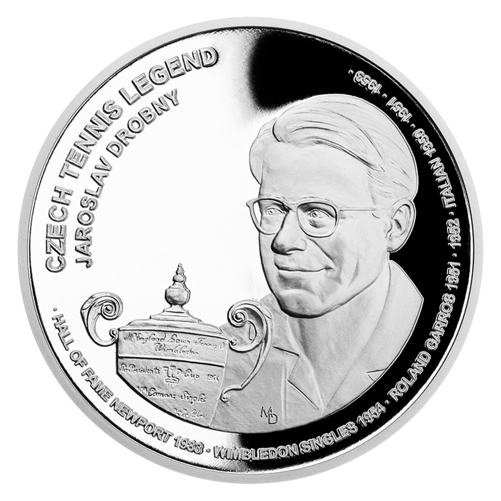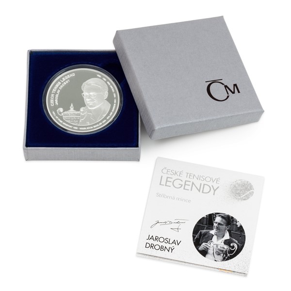 Stříbrné mince České mincovny ze sběratelského cyklu České tenisové legendy představují našeho vůbec prvního krajana, který zvítězil na prestižním turnaji ve Wimbledonu – Jaroslava Drobného.