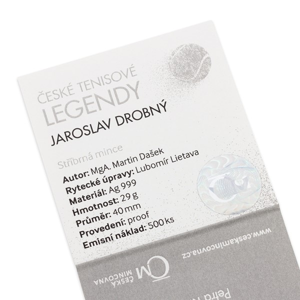 Součástí balení je speciální česko-anglický certifikát pravosti, který shrnuje profesionální sportovní dráhu Jaroslava Drobného. Spolu s dalšími čtyřmi sportovními emisemi si minci můžete uložit do sběratelské krabičky, kterou rovněž najdete v nabídce České mincovny.