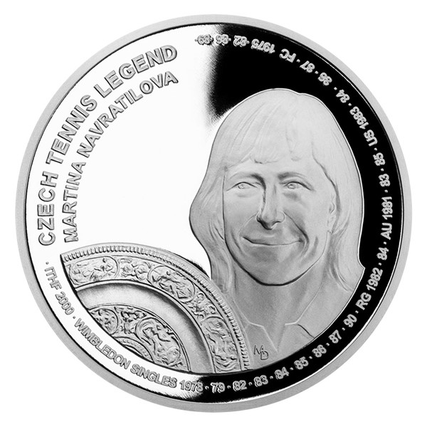 Stříbrná mince České tenisové legendy - Martina Navrátilová proof