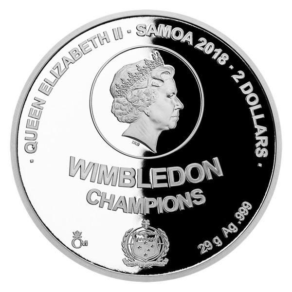 Autorem reliéfu tenisové mince se tentokrát stal akademický sochař Jiří Dostál. Reverzní stranu věnoval bustě Petry Kvitové, která triumfálně drží wimbledonskou trofej – mísu Venus Rosewater. Obklopuje ji opis složený z anglického textu „CZECH TENNIS LEGEND PETRA KVITOVA“ a výčtu jejích největších sportovních triumfů. Sportovní mince České mincovny vycházejí v licenci zahraničního emitenta, kterým je stát Samoa, a jejich averzní strana proto nese jeho nezbytné atributy – státní znak, portrét a jméno panovnice Alžběty II., nominální hodnotu 1 DOLLAR (WST) a rok emise 2018. Kompozici averzu uzavírá nápis „WIMBLEDON CHAMPIONS“.