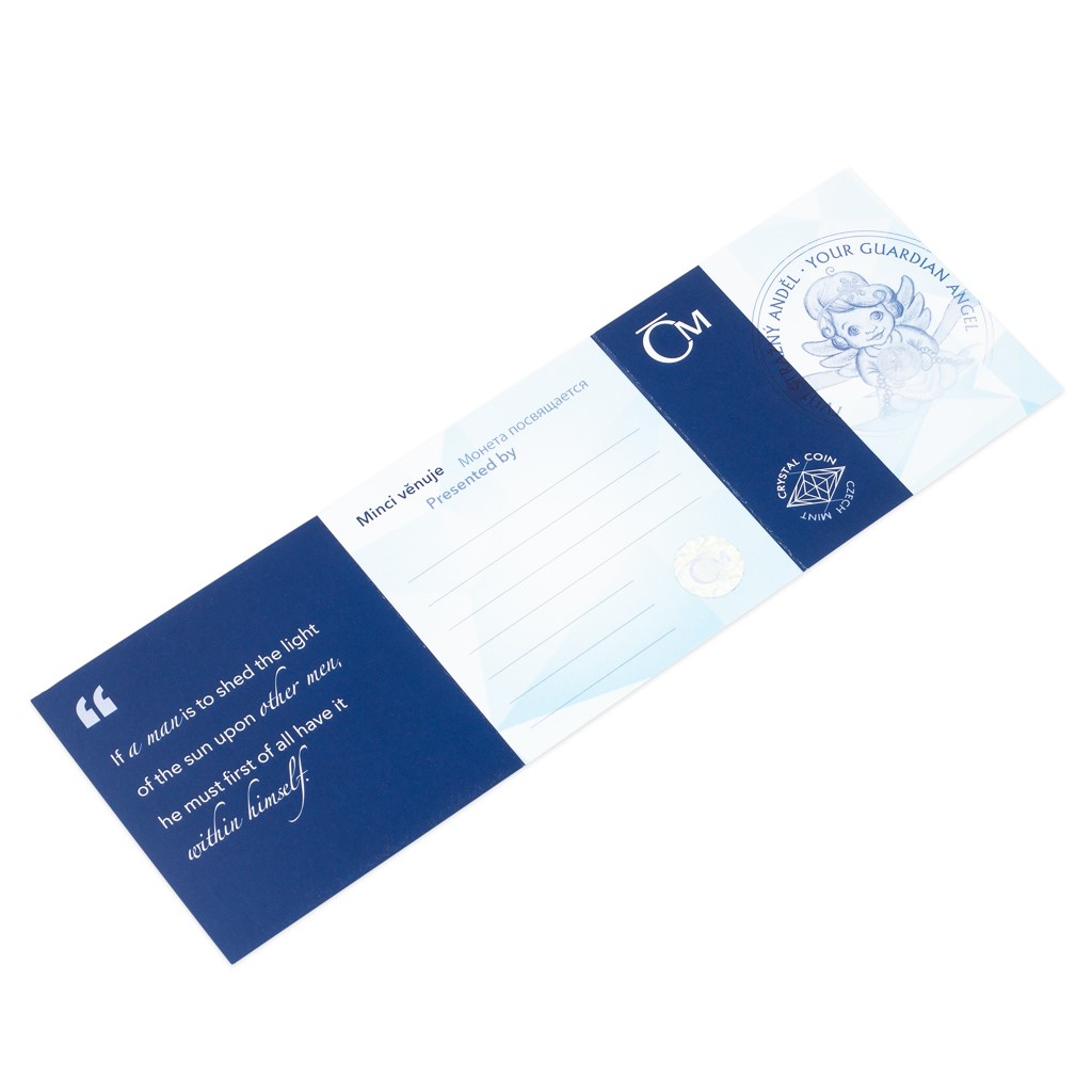 Mince vychází v limitovaném nákladu 1000 kusů a představuje originální dárek pro řadu příležitostí. Je uložena do elegantního balení, které jednoduše proměníte v praktický rámeček pro její vystavení. Součástí mince je také vícejazyčný certifikát pravosti, kam můžete vepsat své věnování a kterému vévodí anglický citát kazatele Phila Bosmanse, jehož překlad zní: „Andělem je ten, koho ti Bůh pošle do života, nečekaně a nezaslouženě, aby ti zažehl pár hvězd, když všechno potemní.“