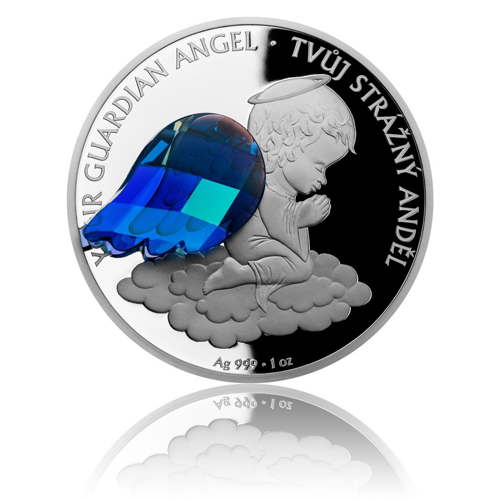 Stříbrná mince Crystal Coin - Anděl strážný proof