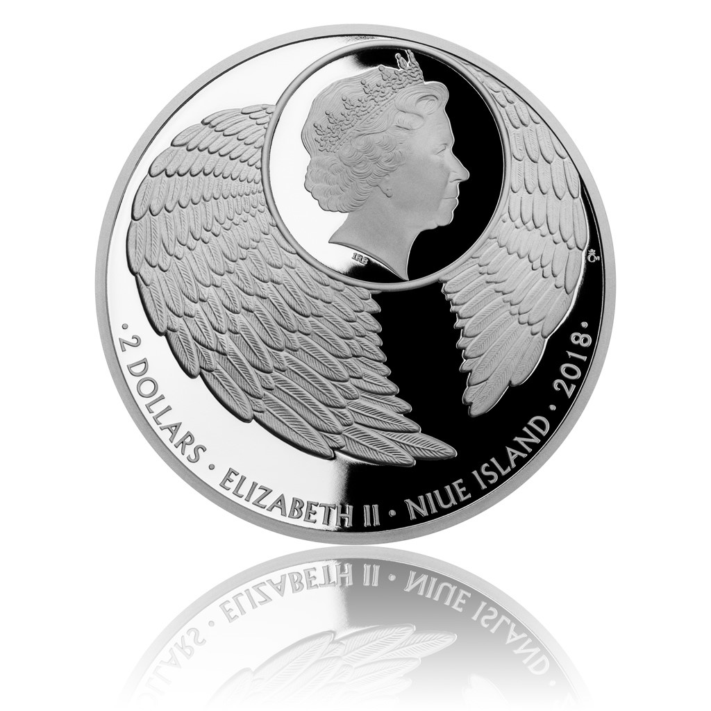 Nadané medailérky Irena Hradecká, DiS., a Petra Brodská, DiS., z České mincovny přisoudily andělu strážnému roztomilou podobu okřídleného děťátka se svatozáří, které klečí na obláčku a usilovně se za nás modlí. Na stříbrný reliéf pak navazuje broušený křišťálový kámen ve tvaru křídla. Kompozici reverzní strany dotváří česko-anglický opis „YOUR GUARDIAN ANGEL – TVŮJ STRÁŽNÝ ANDĚL“. Protože mince České mincovny vycházejí v licenci zahraničního emitenta, kterým je ostrov Niue, averzní strana mince nese jeho nezbytné atributy – nominální hodnotu 2 DOLLARS (NZD), rok emise 2018, jméno Alžběty II. a portrét panovnice, který je obklopen andělskými perutěmi.