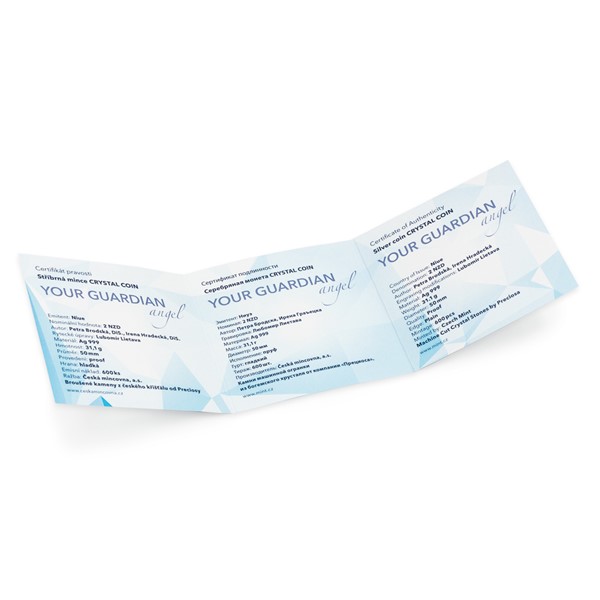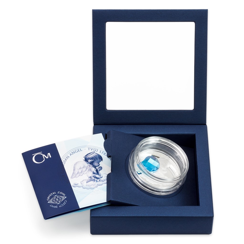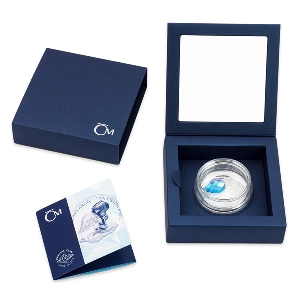 Unikátní stříbrné mince s broušeným českým křišťálem z řady „Crystal Coin“ jsou výsledkem spojení tradičních jabloneckých řemesel – medailérství České mincovny a sklářství společnosti Preciosa –, jaké nemá na celém světě obdoby. Po dárkových mincích, jejichž tématem byly narozeniny, štěstí, láska a užívání si života, přichází motiv strážného anděla.