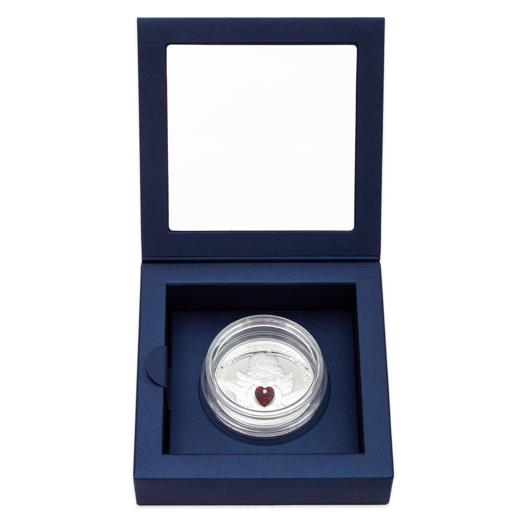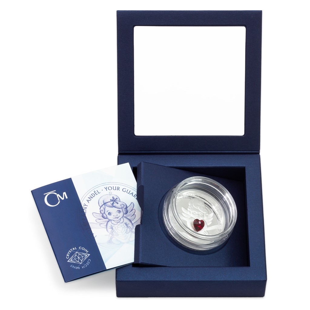 Po dárkových mincích, jejichž tématem byly narozeniny, štěstí, láska, užívání si života a narození dítěte, rozšířil produktovou řadu „Crystal Coin“ motiv strážného anděla. Andělská emise byla záhy vyprodána a pro velký zájem vychází znovu – již potřetí – s novým reliéfem i křišťálovým kamenem.