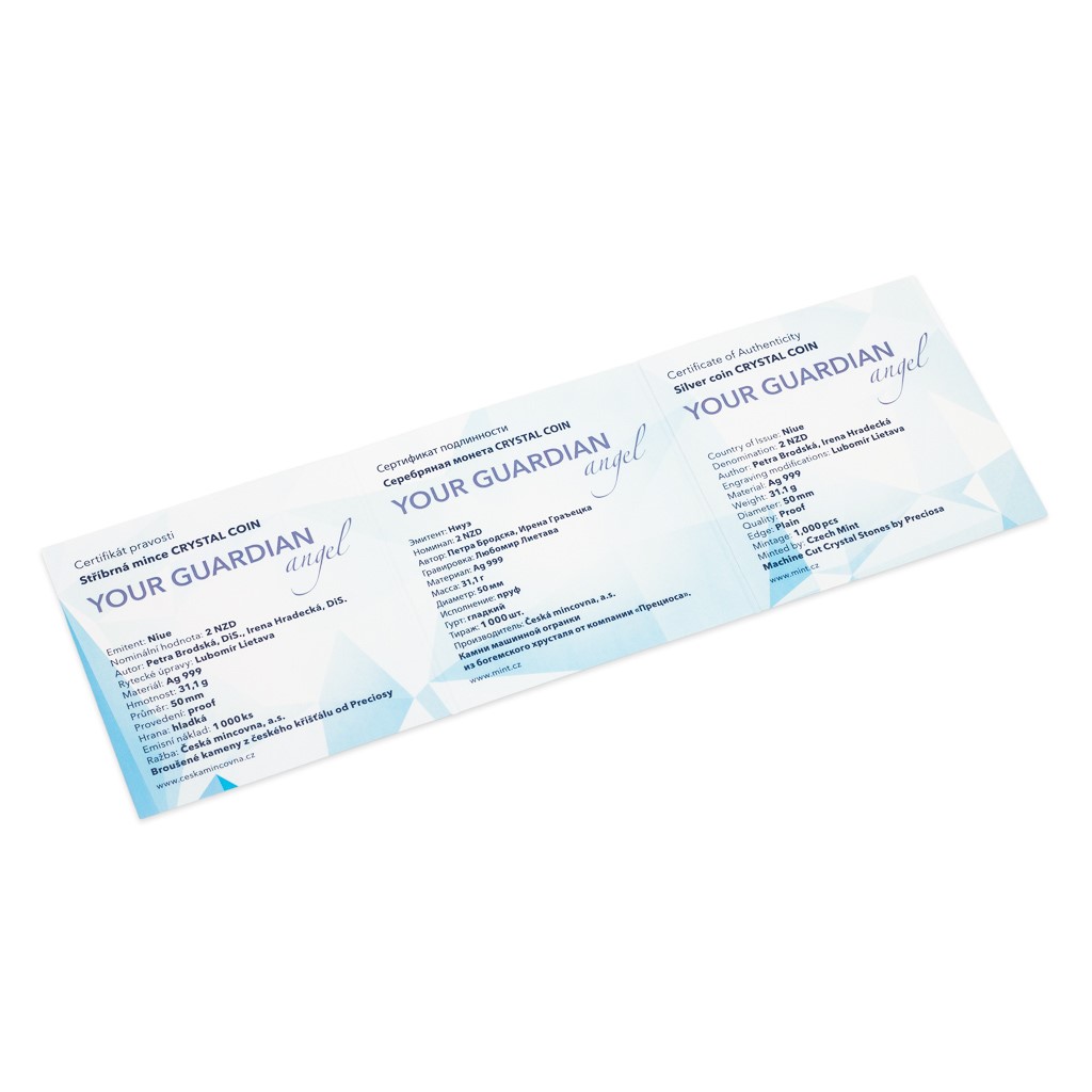 Mince vychází v limitovaném nákladu 1000 kusů a představuje originální dárek pro řadu příležitostí. Je uložena do elegantního balení, které jednoduše proměníte v praktický rámeček pro její vystavení. Součástí mince je také česko-anglicko-ruský certifikát pravosti, kam můžete vepsat své věnování a kterému vévodí anglický citát kazatele Phila Bosmanse, jehož překlad zní: „Andělem je ten, koho ti Bůh pošle do života, nečekaně a nezaslouženě, aby ti zažehl pár hvězd, když všechno potemní.“