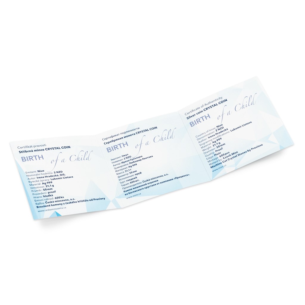 Mince pro štěstí dávali novorozeným dětem již naši předkové a Česká mincovna na tuto tradici po léta navazuje ražbou stříbrných tolarů a zlatých dukátů. V roce 2019 nabídku dárků k narození dítěte rozšiřuje stříbrná mince z unikátní kolekce Crystal Coin.