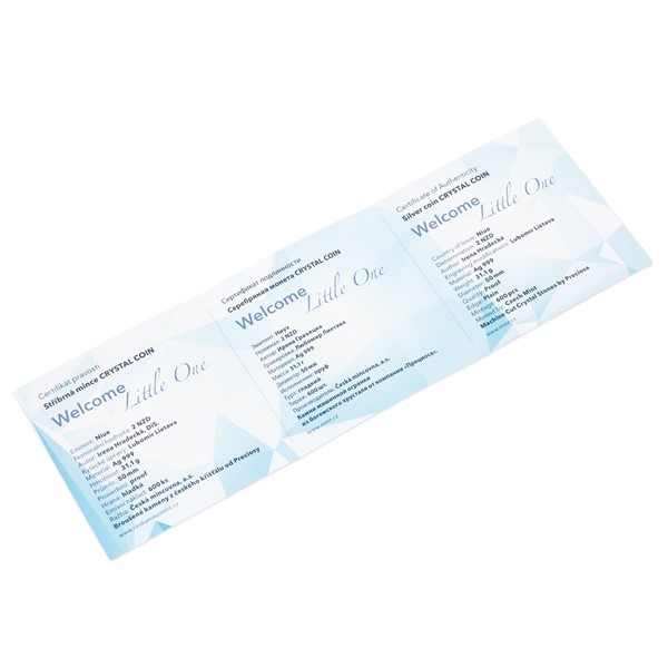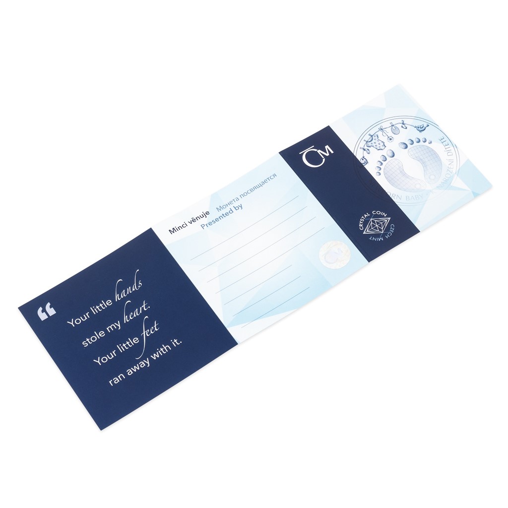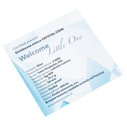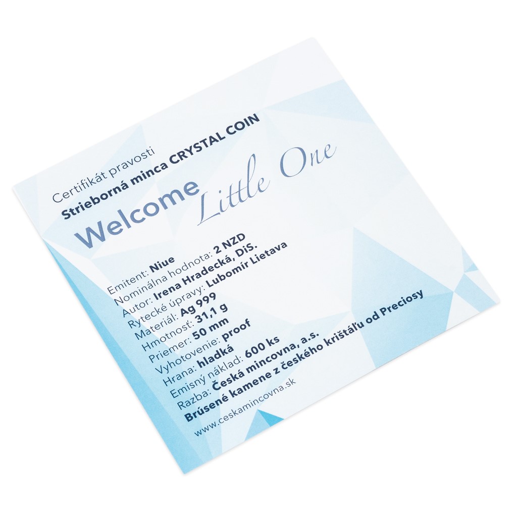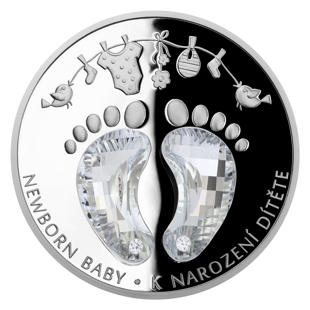 Unikátní dárková řada „Crystal Coin“ je výsledkem spojení tradičních jabloneckých řemesel – medailérství České mincovny a sklářství společnosti Preciosa. K nejoblíbenějším motivům, které se objevují na stříbrných mincích s broušeným českým křišťálem, patří narození dítěte. Originální dárek do kolébky vychází již poněkolikáté – tentokrát s ročníkem 2021.