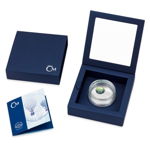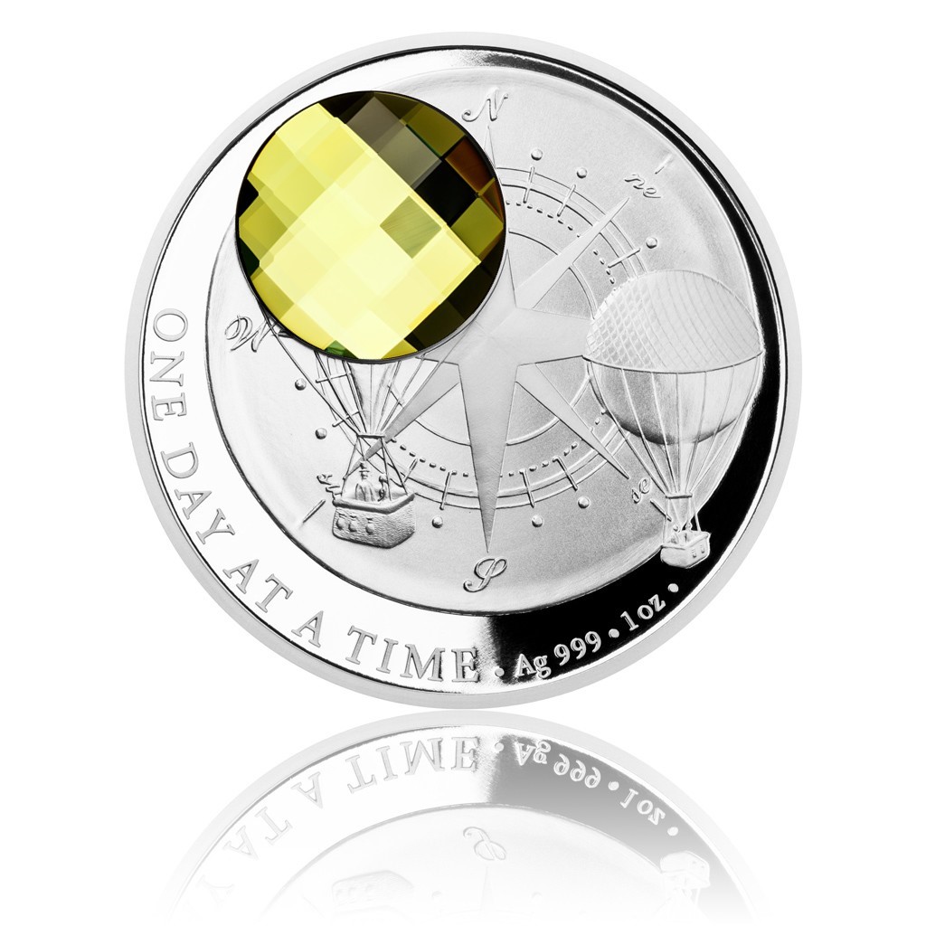 Právě proto si nadaná medailérka Petra Brodská, DiS., vybrala horkovzdušný balon jako dominantní motiv mince, jejímž tématem je užívání si života. Tzv. obal, tedy základní část balonu, která zadržuje horký vzduch, je na minci tvořen broušeným křišťálovým kamenem. Doplnění stříbrného reliéfu tradičním českým sklem je základním znakem produktové řady Crystal Coin a o zpracování křišťálového komponentu se postarala světoznámá jablonecká společnost Preciosa. Reverz mince dále nese ještě jeden menší aerostat, směrovou růžici kompasu na pozadí a anglický text ONE DAY AT A TIME v opisu. Averzní strana patří náležitostem emitenta mince, tedy ostrova Niue, který poskytuje licenci k ražbě mincí České mincovny, a nese jméno a portrét královny Alžběty II., rok emise mince 2017 a nominální hodnotu 2 DOLLARS (NZD).