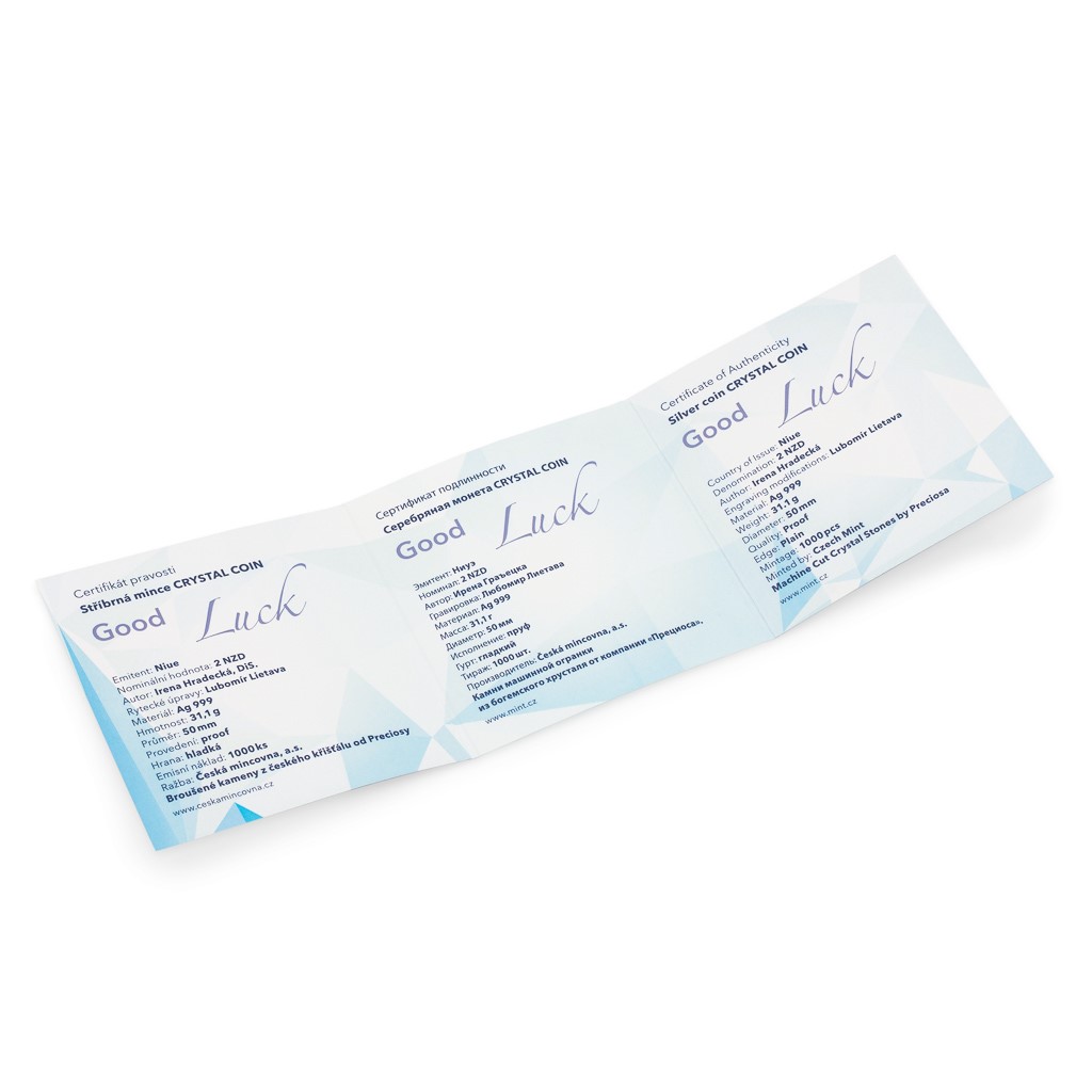 Stříbrná mince Crystal Coin - Pro štěstí aqua bohemica proof