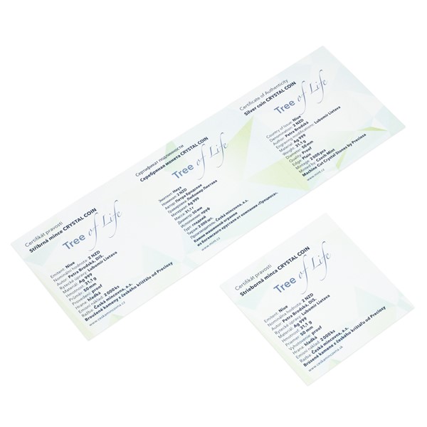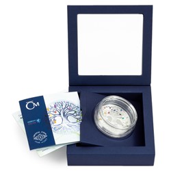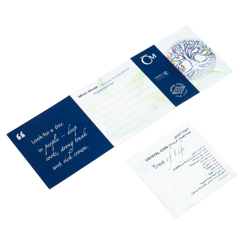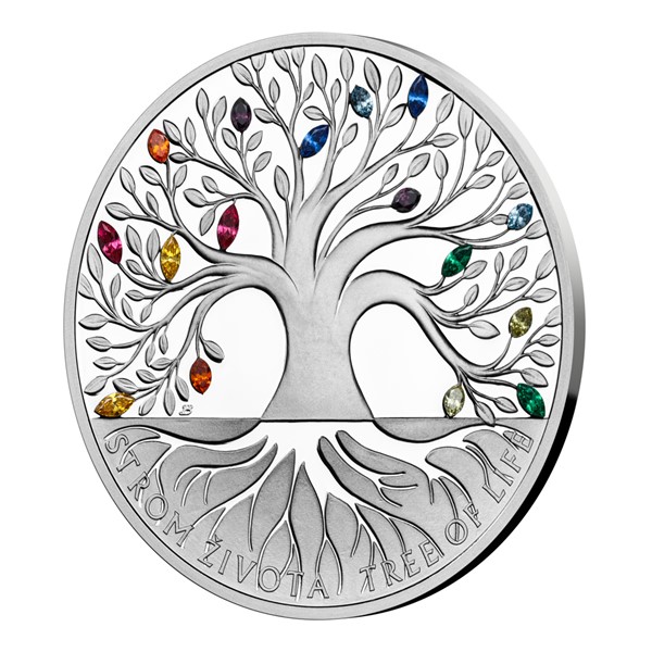 Unikátní stříbrné mince s broušeným českým křišťálem jsou výsledkem spojení tradičních jabloneckých řemesel – medailérství České mincovny a sklářství společnosti Preciosa –, jaké nemá na celém světě obdoby. Oblíbeným přírůstkem do dárkové řady Crystal Coin se stal motiv stromu života, který vydáváme již počtvrté – tentokrát s duhovými křišťálovými listy.