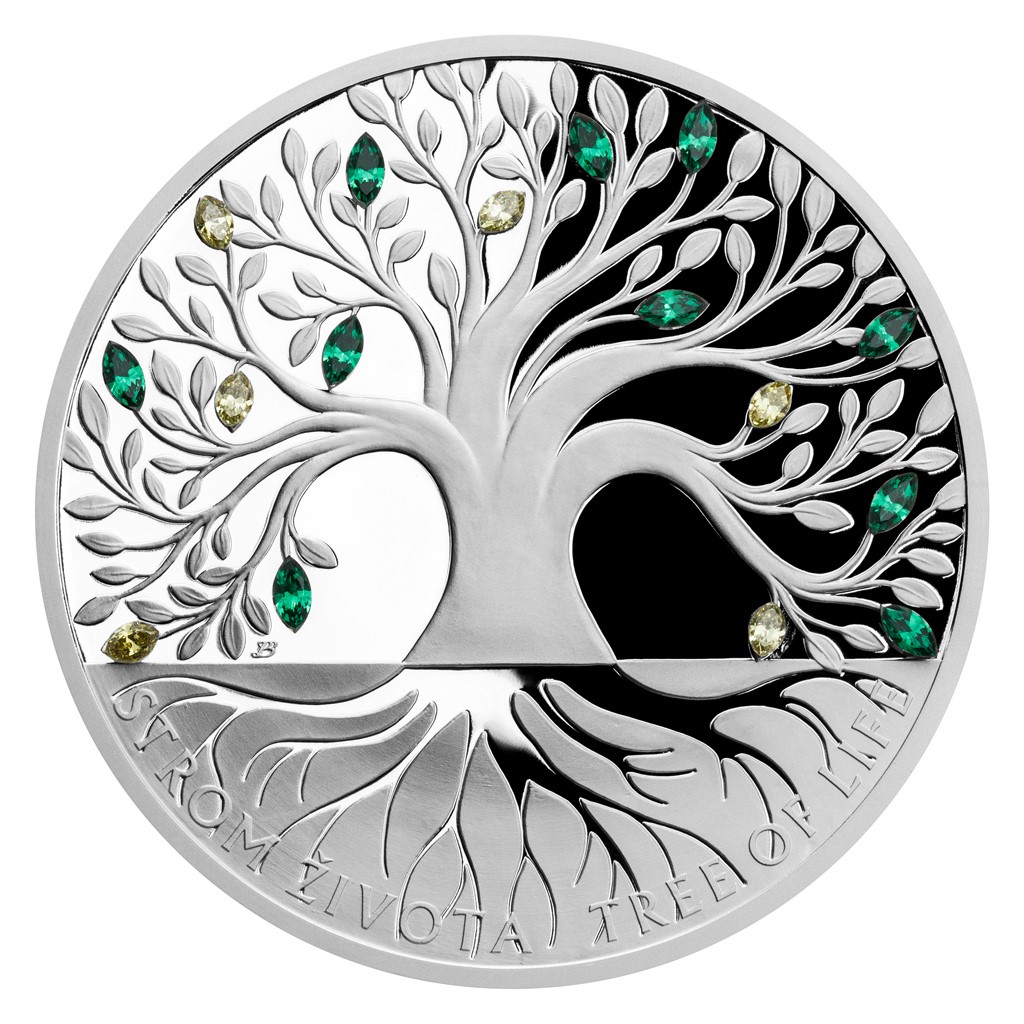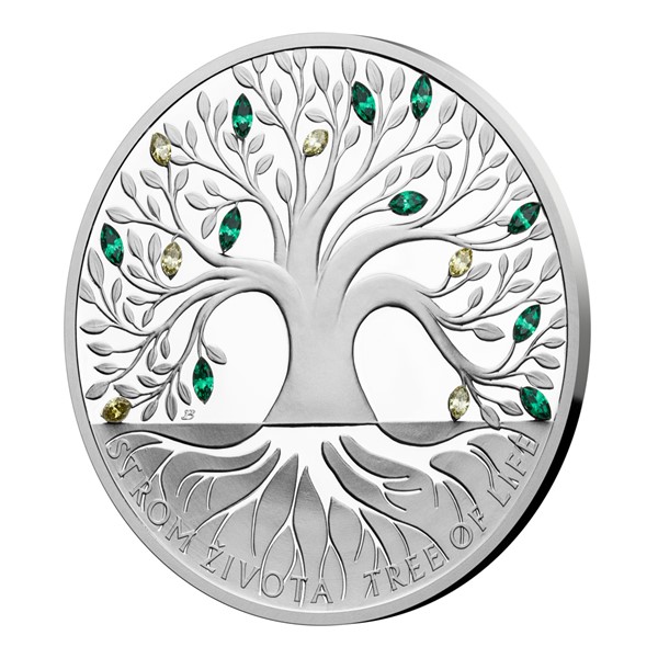 Medailérka Petra Brodská, DiS., věnovala reverzní stranu mince tradičnímu vyobrazení stromu života v kruhové kompozici, přičemž listy stromu tvoří broušené křišťálové kameny. Česko anglický opis uvádí STROM ŽIVOTA – TREE OF LIFE. Protože mince České mincovny vycházejí v licenci zahraničního emitenta, kterým je ostrov Niue, nese jejich averzní strana jeho nezbytné atributy – nominální hodnotu 2 DOLLARS (NZD), rok emise 2020, jméno Alžběty II. a portrét královny, který je obklopen dekorativními ratolestmi.