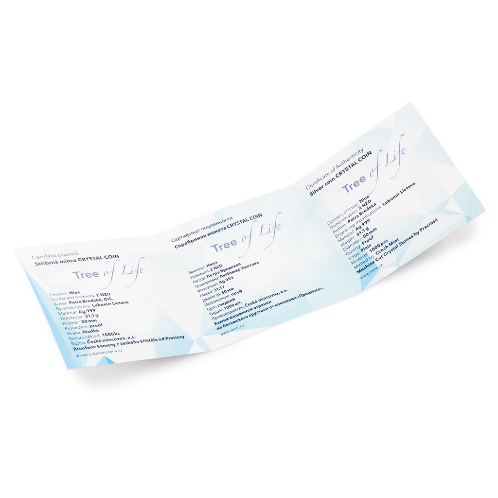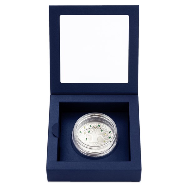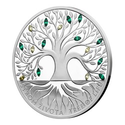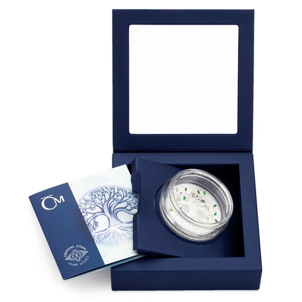 Unikátní stříbrné mince s broušeným českým křišťálem jsou výsledkem spojení tradičních jabloneckých řemesel – medailérství České mincovny a sklářství společnosti Preciosa –, jaké nemá na celém světě obdoby. Novým přírůstkem do dárkové řady Crystal Coin se v roce 2020 stal motiv stromu života.