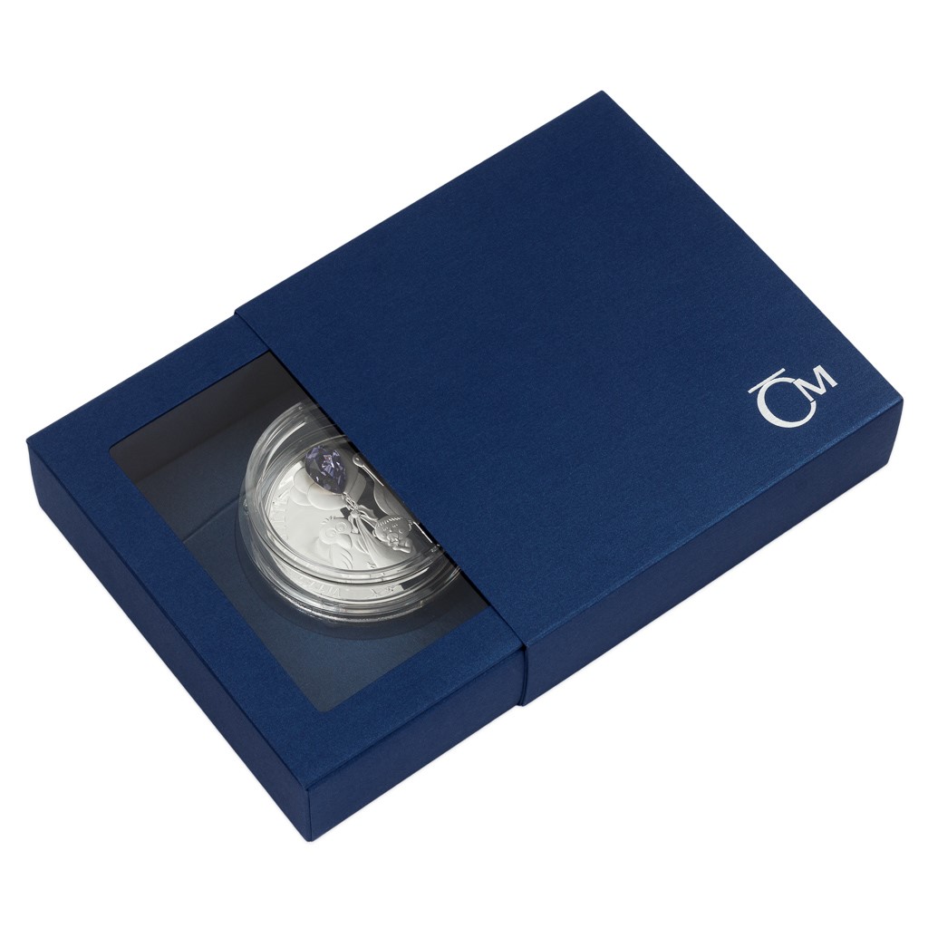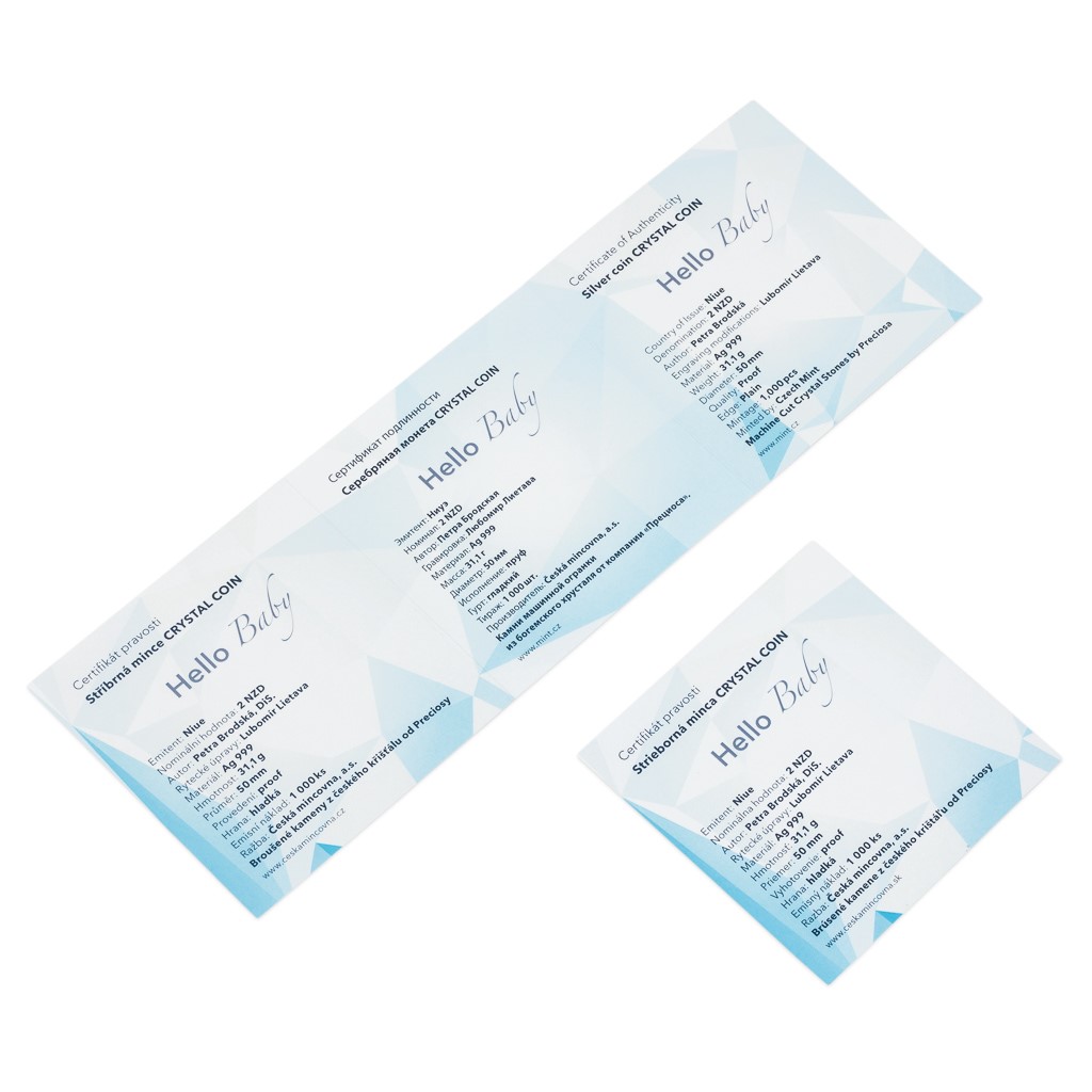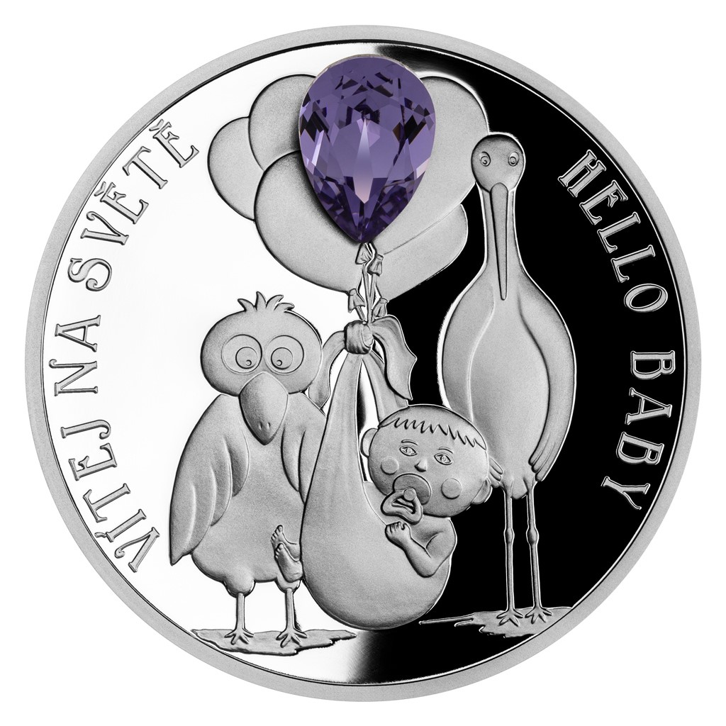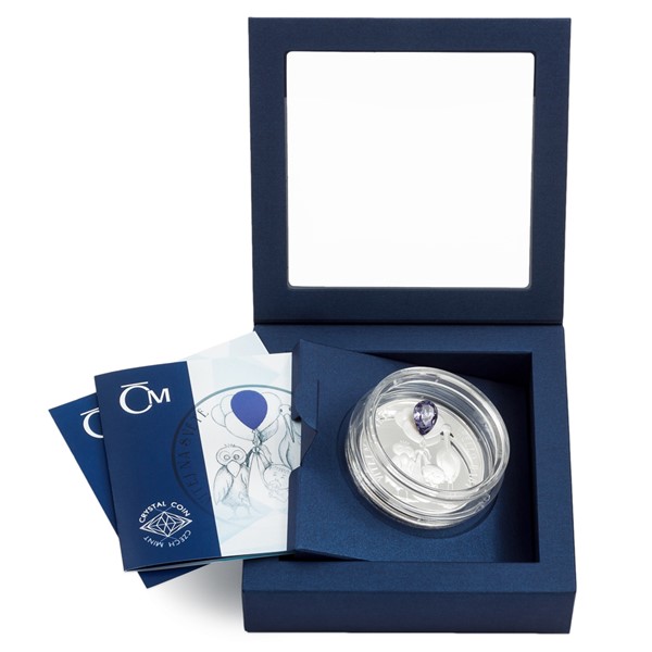 Unikátní dárková řada „Crystal Coin“ je výsledkem spojení tradičních jabloneckých řemesel – mincovnictví České mincovny a sklářství společnosti Preciosa. K nejoblíbenějším motivům, které se objevují na stříbrných mincích s českým křišťálem, patří narození dítěte. Originální dárek do kolébky s motivem čápa vychází již podruhé – tentokrát s ročníkem 2023.