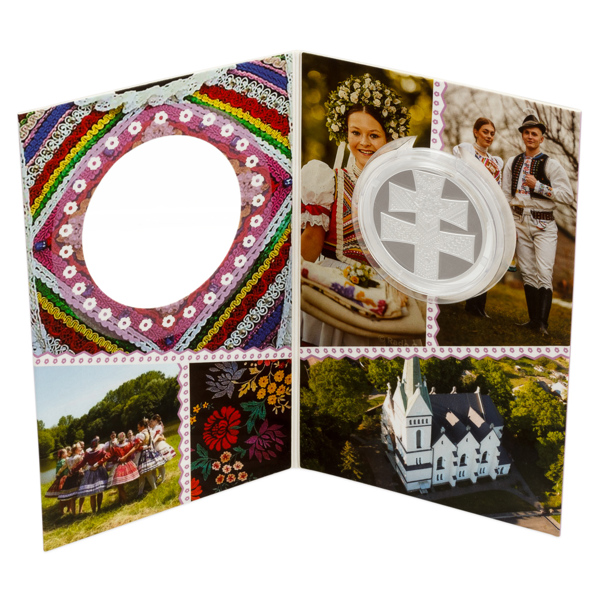 Mince, která je zasazena do speciálního balení, poslouží jako krásný regionální dárek. Nepřehlédněte ani mince věnované čičmanskému vzoru či dětvanské výšivce.