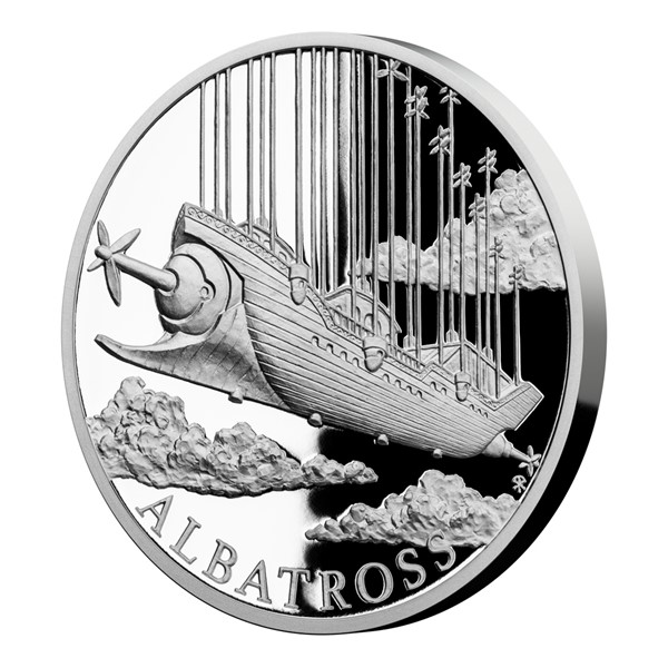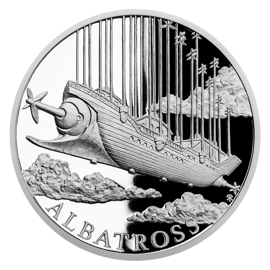 Když se řekne Jules Verne, většina z nás si představí jeho neohrožené dobrodruhy brázdící oblohu v horkovzdušném balonu. Francouzský spisovatel však již v 19. století dobře věděl, že budoucnost patří létajícím strojům těžším než vzduch. Důkazem toho je druhá stříbrná mince České mincovny z minisérie Fantastický svět Julese Verna s motivem vzdušné lodi Albatros.