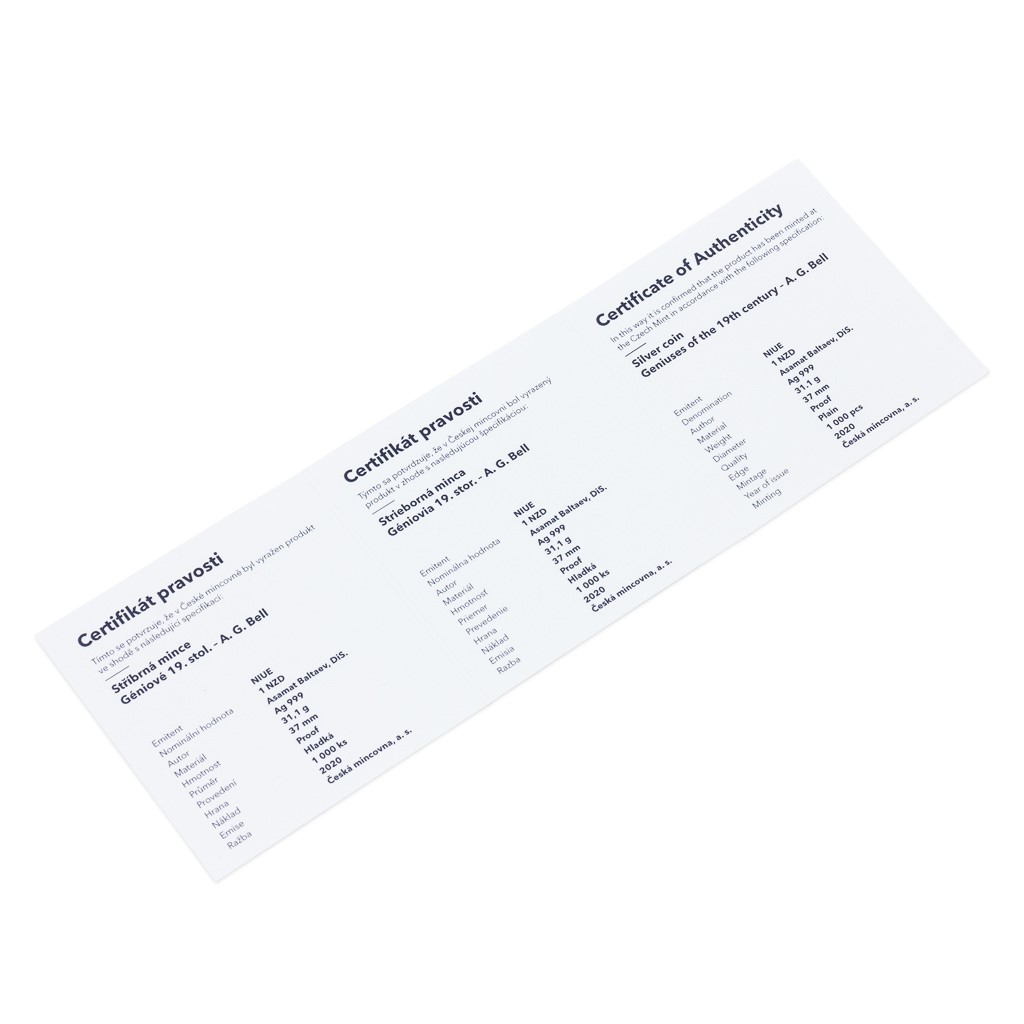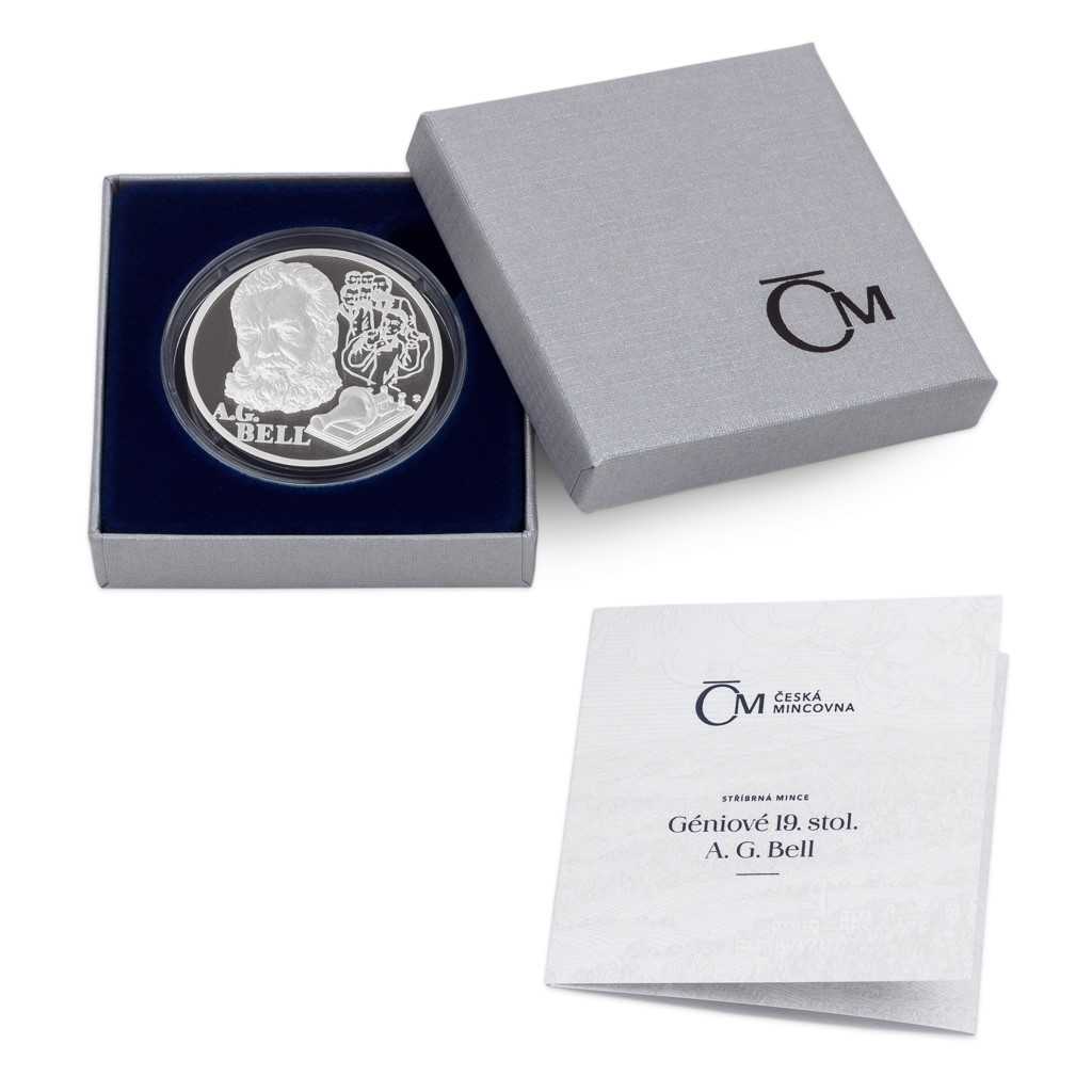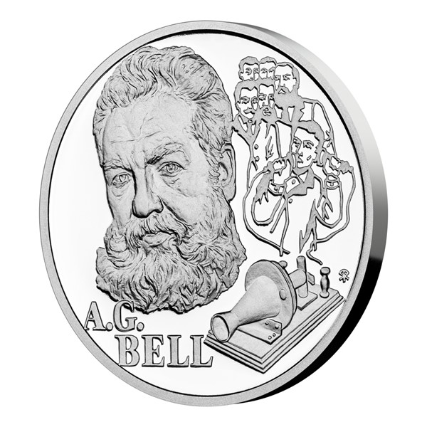 Čtvrtá a poslední stříbrná mince České mincovny z minisérie Géniové 19. století vzdává hold A. G. Bellovi.
