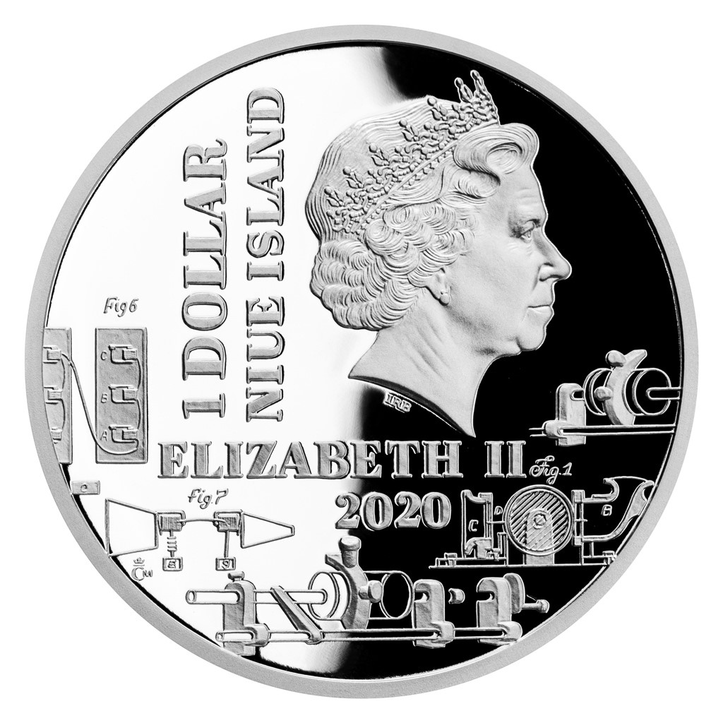 Reverzní strana mince, která je dílem medailéra Asamata Baltaeva, DiS., předkládá vynálezcův portrét v pokročilém věku a nápis T. A. EDISON. Kompozici doplňuje část technického schématu fonografu a vyobrazení muže, který pomocí tohoto přístroje zaznamenává svůj hlas na voskový válec. Averzní strana mince je pak přehlídkou nákresů nejrůznějších vynálezů z 19. století. Protože mince České mincovny vycházejí v zahraniční licenci ostrova Niue, nesou na averzu jméno a portrét královny Alžběty II., nominální hodnotu 1 DOLLAR (NZD) a rok emise 2020.