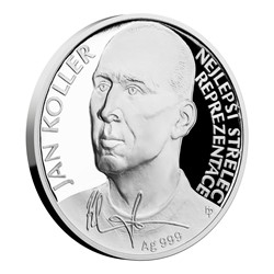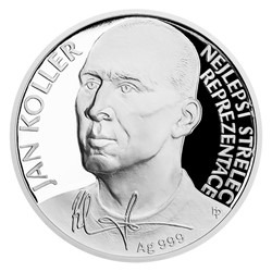 Série stříbrných mincí Československé fotbalové legendy se loučí se všemi fanoušky excelentní kopané. Poslední výkop nemohl připadnout nikomu jinému než kanonýrovi Janu Kollerovi.