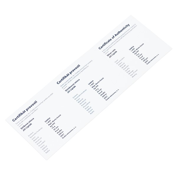 Reverzní strana mince, která je dílem medailéra MgA. Martina Daška, předkládá střelce, který triumfálně zvedá pušku nad hlavu. Opis uvádí JIŘÍ LIPTÁK – TOKIO 2020 – ZLATÁ MEDAILE – TRAP. Sportovní mince České mincovny vycházejí v zahraniční licenci státu Samoa, a jejich averzní strana proto nese nezbytné atributy tohoto emitenta – státní znak, jméno a portrét královny Alžběty II., letopočet emise 2021 a nominální hodnotu 1 DOLLAR (WST).