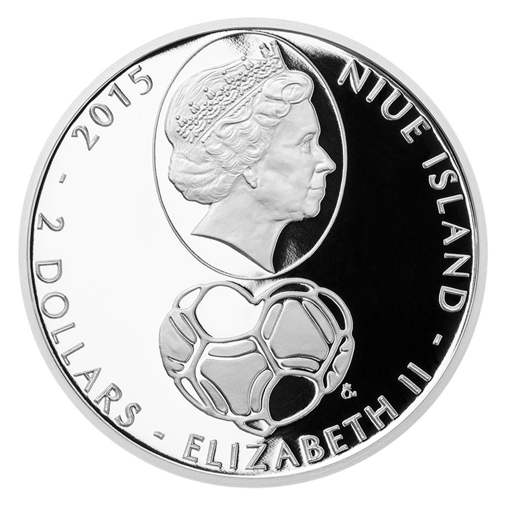Averz mince vyobrazuje portrét královny Alžběty II. včetně dalších atributů emitenta spolu s plastikou fotbalového míče ve tvaru srdce – symbolem Nadace fotbalových internacionálů, jejímž prostřednictvím podpoří část výdělku z prodeje mincí naše bývalé fotbalové mistry.
