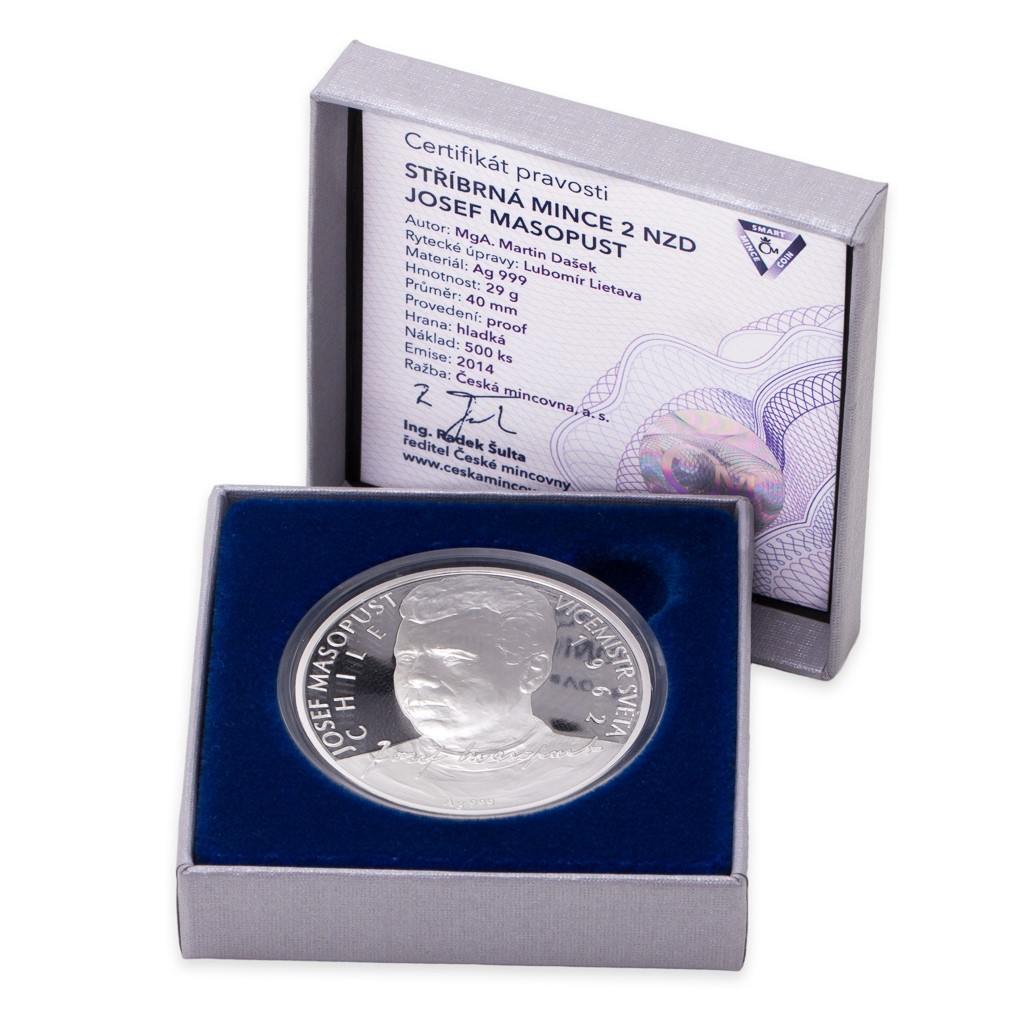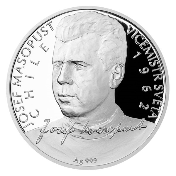 Stříbrná mince Josef Masopust je první z jedenácti emisí nové série Československé fotbalové legendy od České mincovny. Na jejím averzu se nachází atributy emitenta a motiv fotbalového míče. Reverz je věnován mistrovské podobizně fotbalové ikony spolu s jeho podpisem a textem „JOSEF MASOPUST VÍCEMISTR SVĚTA 1962 CHILE“. Autorem obou stran je zkušený medailér MgA. Martin Dašek. Mince z ryzího stříbra Josef Masopust vychází v nákladu pouhých 500 kusů a jistě potěší jak sběratele patrioty, tak všechny nadšence excelentní české kopané.
