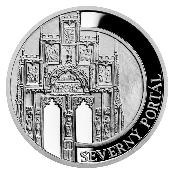 Na druhé stříbrné minci České mincovny ze čtyřdílné minisérie, která vzdává hold košickému dómu svaté Alžběty, najdete vyobrazení severního portálu.