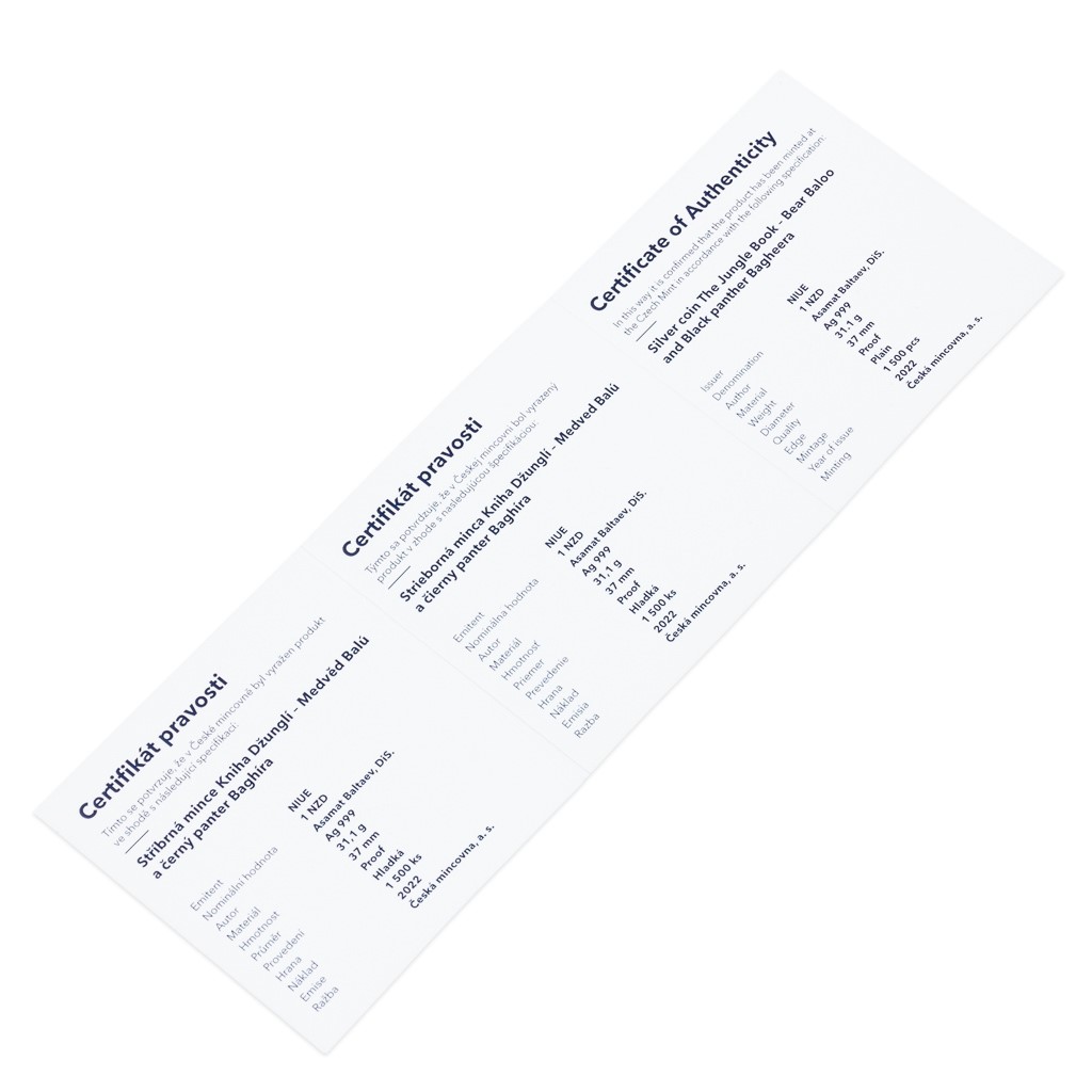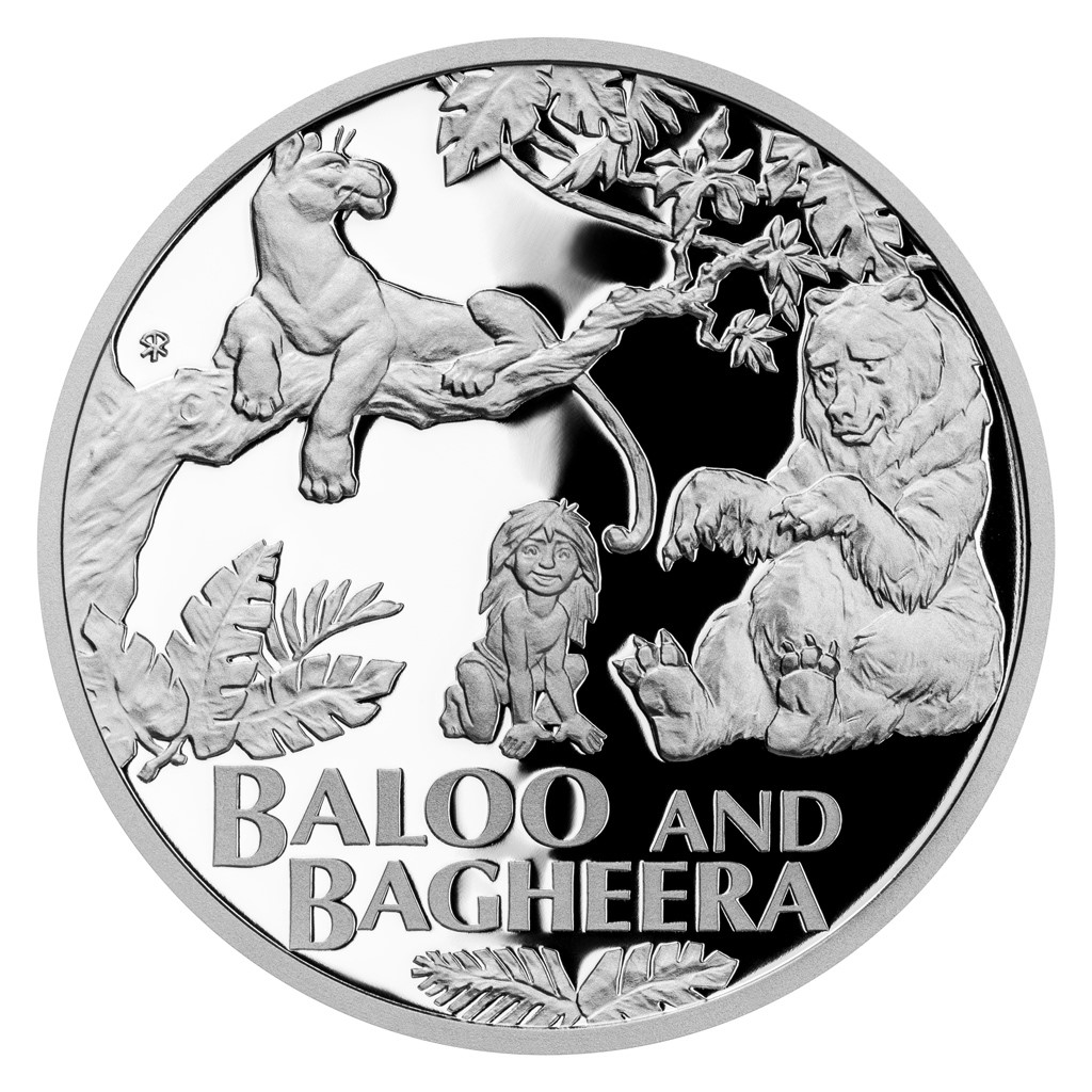 Medailér Asamat Baltaev, DiS., který je autorem mince, věnoval její reverzní stranu Mauglího výuce. Sedící medvěd dává malému chlapci lekci a panter, který odpočívá na větvi, je pozoruje. Kompozici dotváří anglický nápis BALOO AND BAGHEERA. Averzní strana mince pak předkládá indickou džungli plnou neposlušných opic. Protože mince České mincovny vycházejí v zahraniční licenci ostrova Niue, nesou na averzu ještě jméno a portrét královny Alžběty II., nominální hodnotu 1 DOLLAR (NZD) a rok emise 2022.