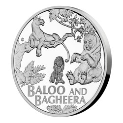 Stříbrná mince Kniha džunglí - Medvěd Balú a černý panter Baghíra proof