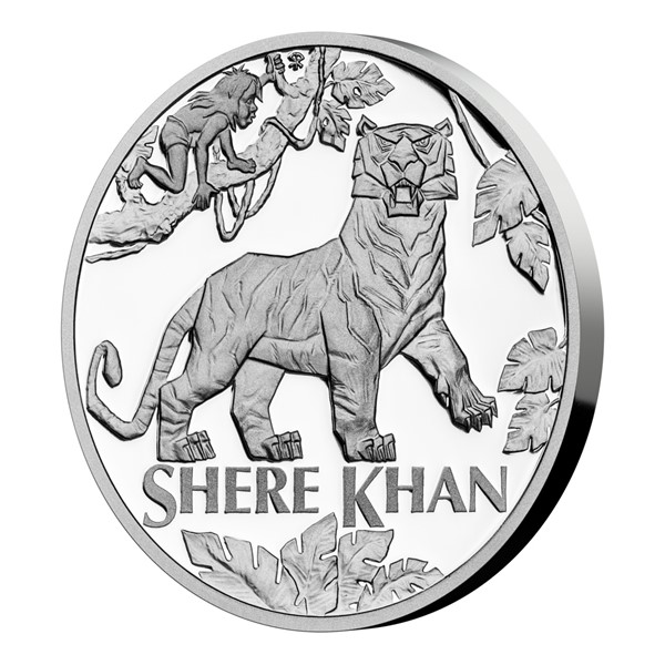 Reverzní straně mince, která je dílem medailéra Asamata Baltaeva, DiS., vévodí majestátní Šér Chán, kterého sleduje Mauglí schovaný v korunách stromů. Kompozici dotváří anglický nápis SHERE KHAN. Averzní strana mince pak předkládá indickou džungli plnou neposlušných opic. Protože mince České mincovny vycházejí v zahraniční licenci ostrova Niue, nesou na averzu ještě jméno a portrét královny Alžběty II., nominální hodnotu 1 DOLLAR (NZD) a rok emise 2022.