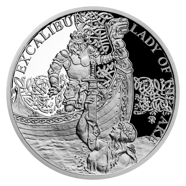 Stříbrná mince Legenda o králi Artušovi - Excalibur a Jezerní paní proof