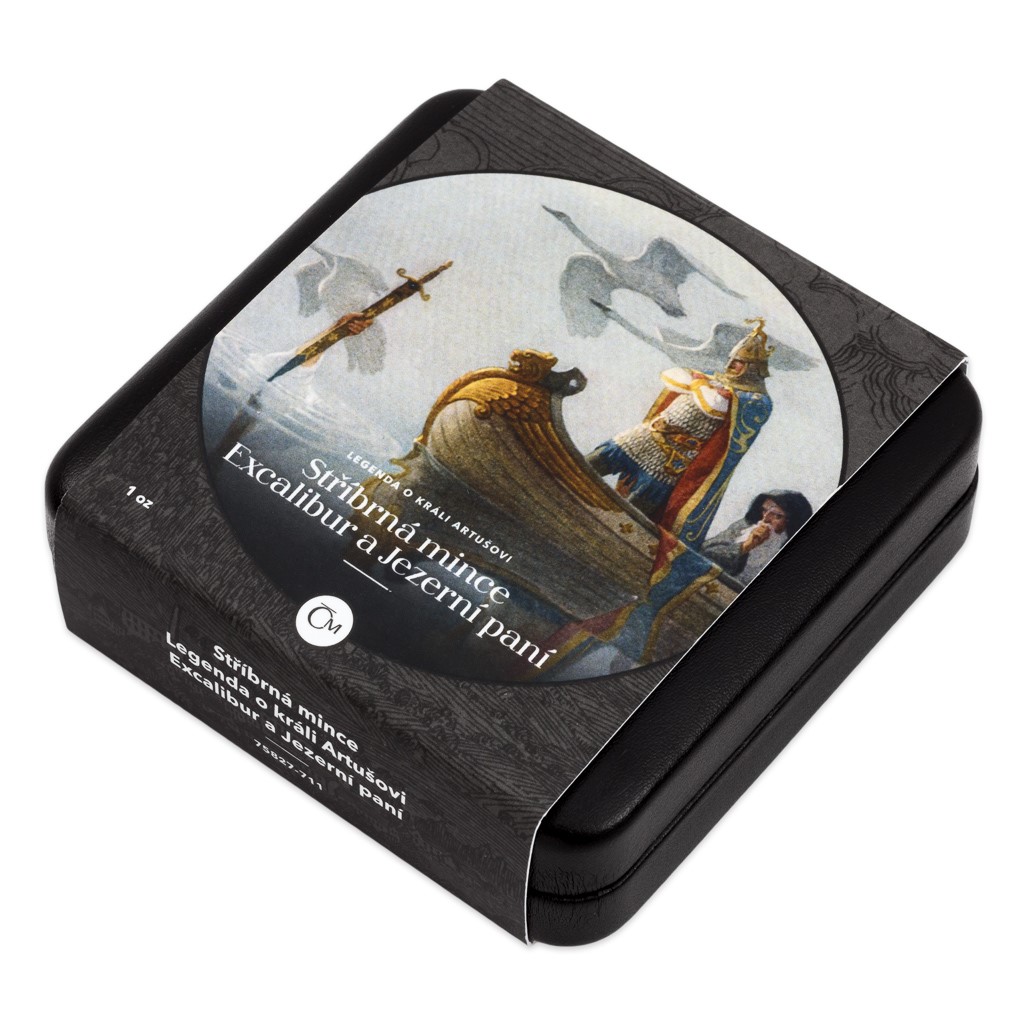 Nezapomeňte, že kompletní sbírku čtyř mincí si můžete uložit do speciální sběratelské krabičky, kterou rovněž najdete v nabídce České mincovny. Na jejím víčku je vyobrazen meč v kameni.
