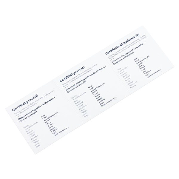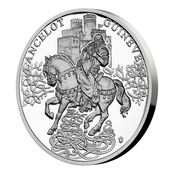 Třetí stříbrná mince České mincovny ze čtyřdílné minisérie inspirované legendou o králi Artušovi připomíná příběh o osudové lásce mezi rytířem Lancelotem a královnou Ginevrou.