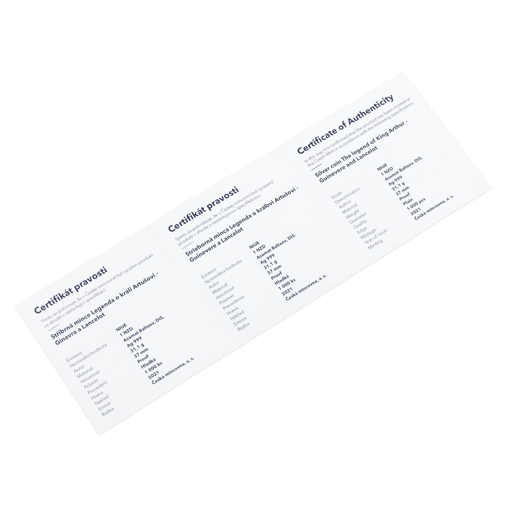 Stříbrná mince Legenda o králi Artušovi - Ginevra a Lancelot proof