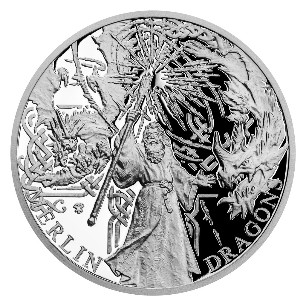 Král Artuš sice měl své rytíře, svou královnu a svůj zázračný meč, ale jeho nejvěrnějším souputníkem byl čaroděj Merlin. Právě jemu náleží závěrečná stříbrná mince České mincovny z minisérie Legenda o králi Artušovi.