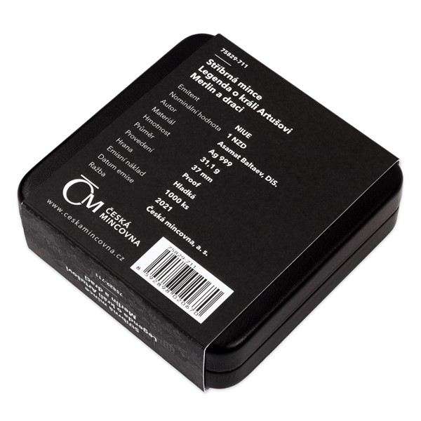 Stříbrná mince Legenda o králi Artušovi - Merlin a draci proof