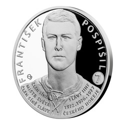 Sběratelská série stříbrných mincí České mincovny „Legendy čs. hokeje“ připomíná představitele dvou velkých generací našeho ledního sportu. Pochopitelně mezi nimi nemůže chybět obránce František Pospíšil.