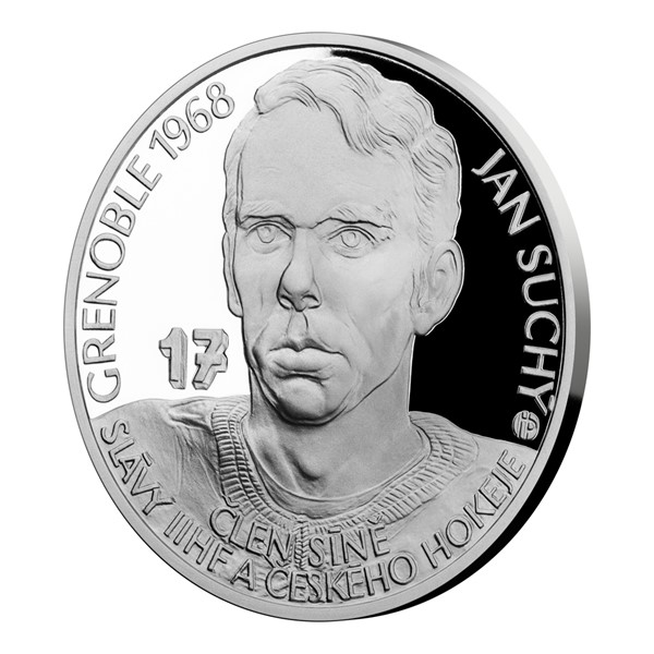 Ve sběratelské sérii „Legendy českého hokeje“ se představuje nejproduktivnější a pravděpodobně i nejlepší obránce v historii našeho ledního sportu. Stříbrná mince České mincovny patří Janovi Suchému.
