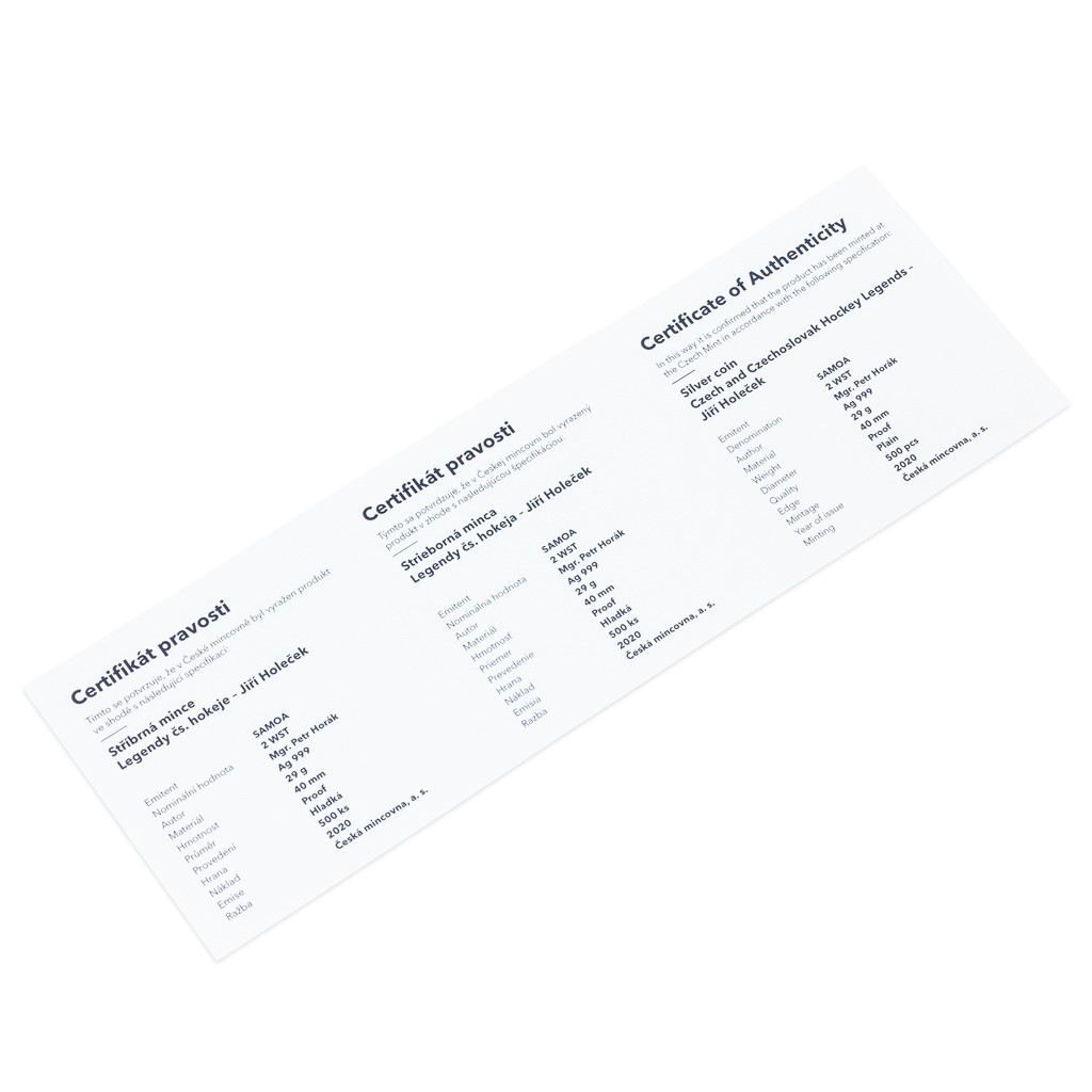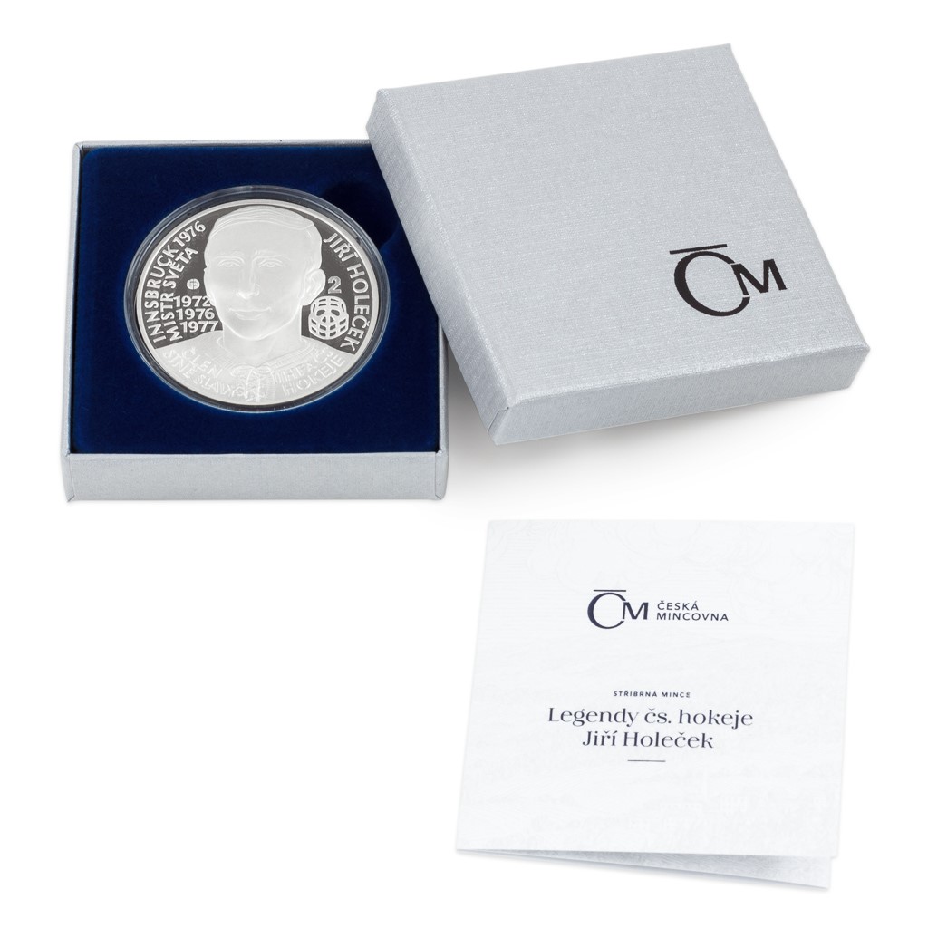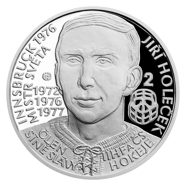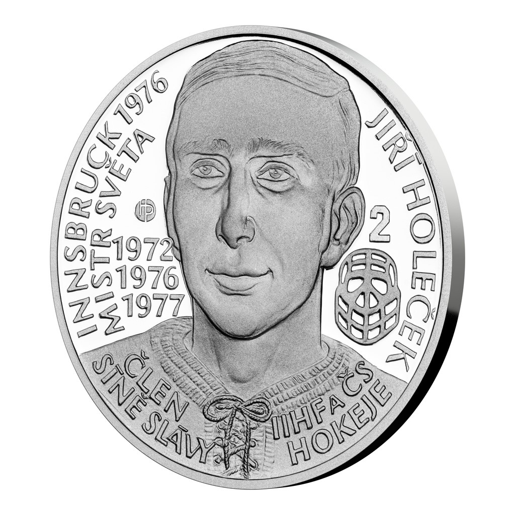 Předposlední stříbrná mince České mincovny z cyklu Legendy československého hokeje je věnována Jiřímu Holečkovi.