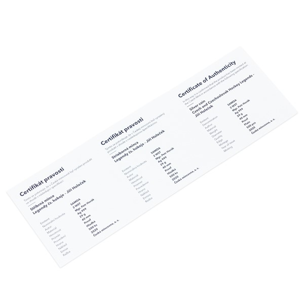 Stříbrná mince Legendy čs. hokeje - Jiří Holeček proof