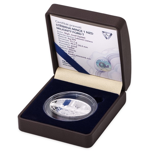 Návrh stříbrné Smart mince 1 NZD Miliontý Ford T byl výzvou medailérskému umění MgA. Jana Oplištila. Svým citem pro zajímavé kompozice Českou mincovnu opět nezklamal a připravil pro emisi originální předlohy rubové i lícové strany. Motiv montážní linky s automobily Ford T spolu s dvojjazyčnými nápisy vévodí reverzu mince. Averzu pak vedle atributů emitenta dominuje plastika tří variant vozu. Stejně jako předchozí emise ze série Milníky světové dopravy má i tato stříbrná mince atraktivní tvar elipsy. Nepromeškejte příležitost stát se majitelem unikátního numismatického kousku – emise je limitována pouhými 500 kusy.