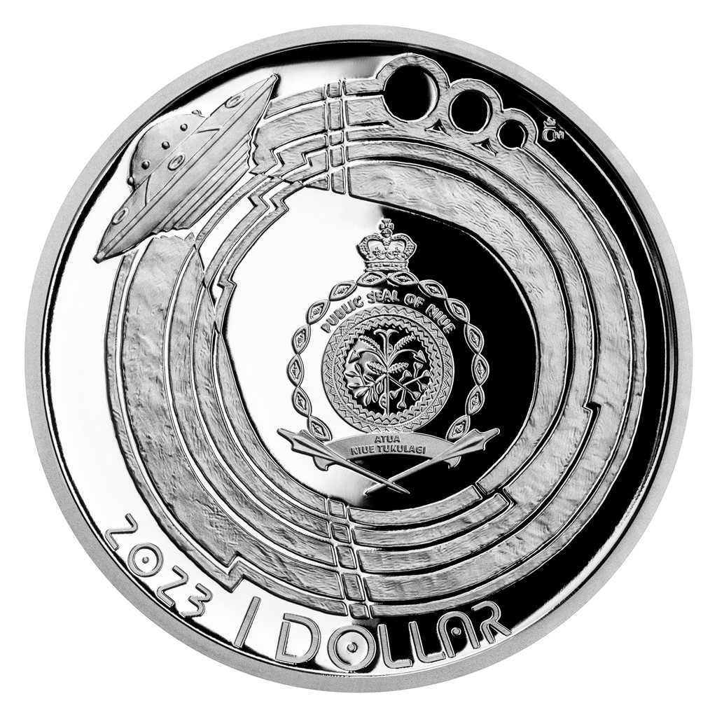 Reverzní stranu mince věnoval medailér Asamat Baltaev, DiS., věrnému portrétu československého kosmonauta ve skafandru. V pozadí se vyjímá kosmická loď Sojuz 28 připravená ke startu, jejíž trup lemuje jméno VLADIMÍR REMEK. Kompozici dotvářejí ještě stylizované vesmírné objekty – hvězdy a planety. Averzní strana mince vtipně předkládá kruhy v obilí a létající talíř, který osvětluje státní znak ostrova Niue. Ten je spolu s letopočtem emise 2023 a nominální hodnotou 1 DOLLAR (NZD) nezbytným atributem zahraničního emitenta mince – tichomořského ostrova, který České mincovně poskytuje licenci k ražbě vlastních pamětních mincí.