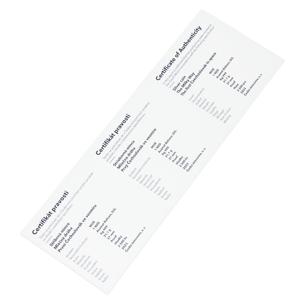 Pátá stříbrná mince ze sběratelské série Mléčná dráha je věnována prvnímu Čechoslovákovi ve vesmíru – Vladimíru Remkovi.