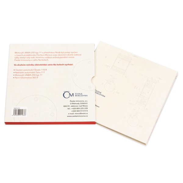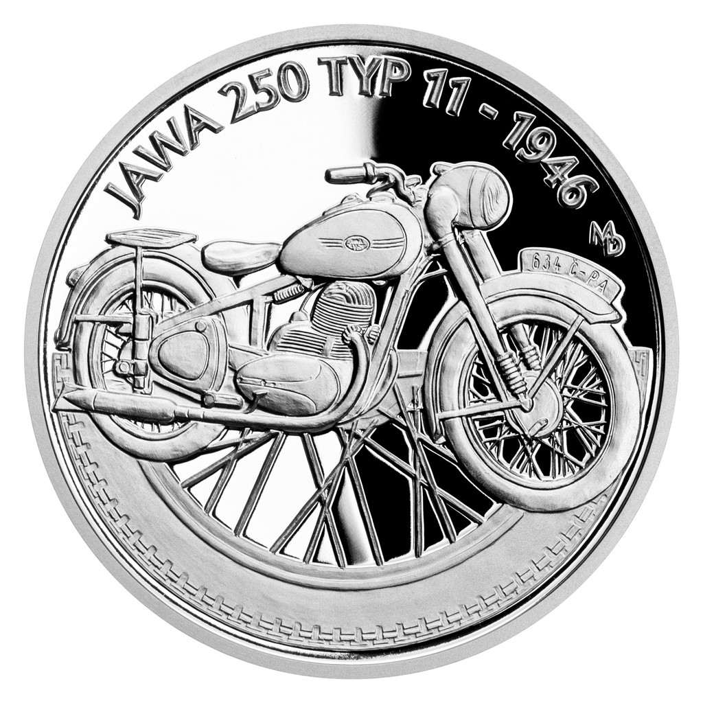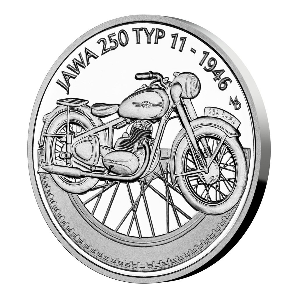 Druhým motocyklem, který se objevuje na stříbrné minci České mincovny z cyklu Na kolech, je JAWA 250 typ 11 přezdívaná „Pérák“.