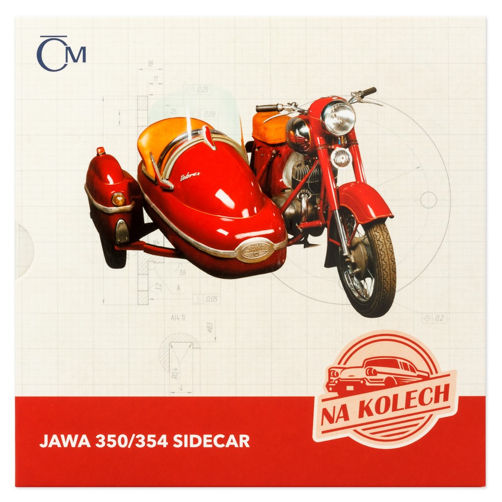 Třetím motocyklem, který se objevuje na stříbrné minci České mincovny z cyklu Na kolech, je JAWA 350/354 sidecar, které se přezdívá „Kývačka“.